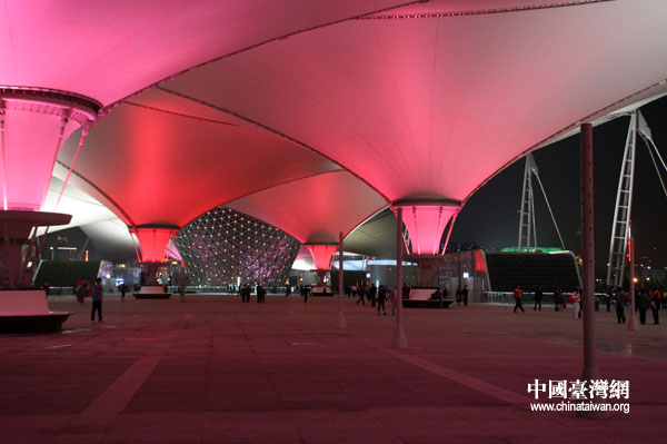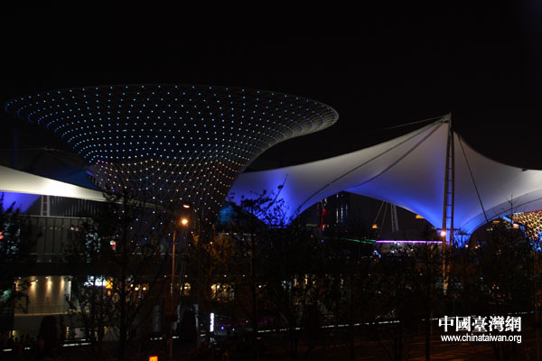 夜间的世博轴,绽放出奇异的色彩。(中国台湾网 钟宝华 摄)