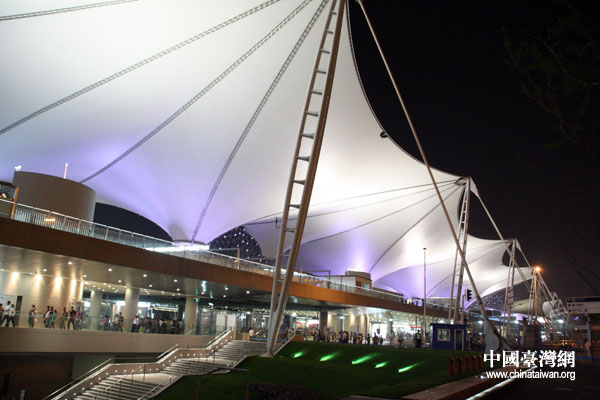 世博轴是园区内规模庞大、美观又实用的观景平台,白天黑夜都有着美丽的身姿。(中国台湾网 钟宝华 摄)