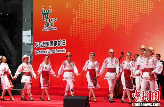 中新网上海7月29日电(陈婷婷)上海世博会29日迎来罗马尼亚馆日。罗马尼亚艺术家们身着民族服饰,载歌载舞,献上来自罗马尼亚的浪漫情怀。