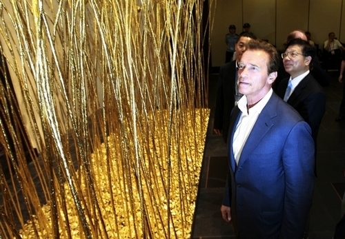 东方网9月13日消息:据《东方早报》报道,说起美国现任加州州长,有的人可能会一时想不出他的名字,但提到阿诺施瓦辛格,则可以用“妇孺皆知”这个词汇来概括其在中国的影响力。昨日,施瓦辛格率领加州一个大型贸易代表团现身世博园。在造访美国馆(网上美国馆)时,他宣布美国加州将申请在硅谷举办2020年世博会。
