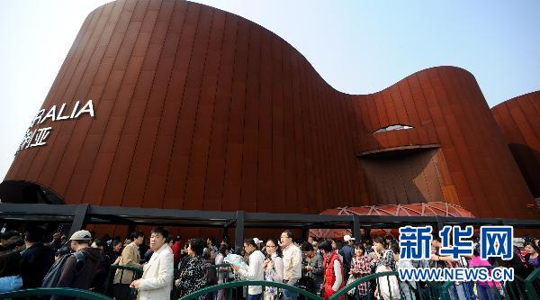 10月31日,游客排队等候进入澳大利亚馆参观。