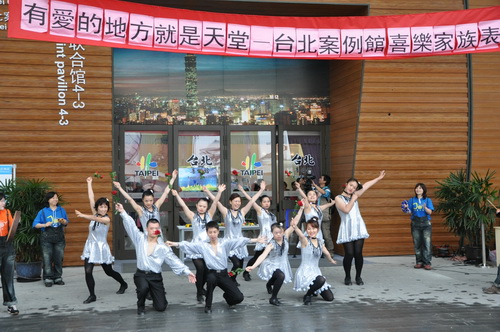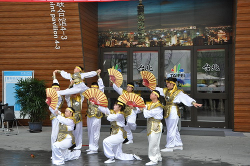 “六一”国际儿童节前夕,世博会台北案例馆外广场今天上午在雨中上演了一场别出心裁的特别秀——来自宝岛台湾的十多位唐氏综合症和智障孩子进行了一场精彩的音乐、舞蹈演出,展示了自身在各自家庭和社会公益力量的关爱下,健康生活、阳光成长的动人画面和“微笑的力量”。