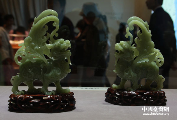 震旦馆展示的玉雕。(中国台湾网 张弛 摄)