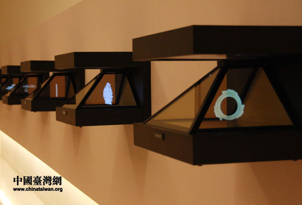 震旦馆展示的玉器360度全息影像。(中国台湾网 钟宝华 摄)