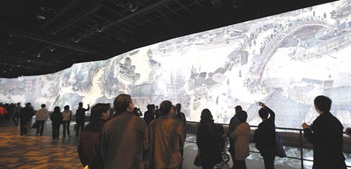 世博园区,汇集各国风景,各省市的特色也可一览无遗;中国馆使用多媒体展出知名的“清明上河图”。