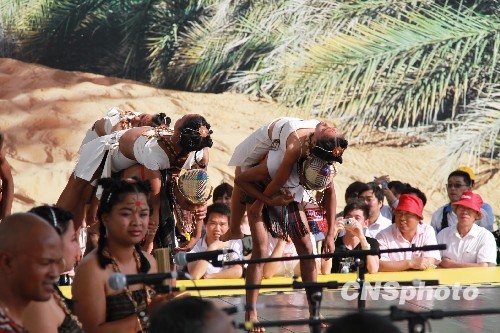 5月30日,马达加斯加肯特思米诺歌舞团在世博园非洲广场表演比洛传统仪式,逼真的神态、激情的表演,博得许多参观者称赞。当天是马达加斯加馆日,在世博中心内举行了其国家馆日活动,马方和中方代表共同出席。 中新社发 殷春永 摄
