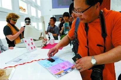 游客在浦西园区敲章 晚报记者 任国强 资料图片