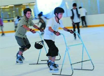 世博文化中心地下一层的真冰溜冰场成为游客避暑好去处