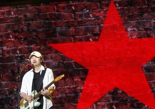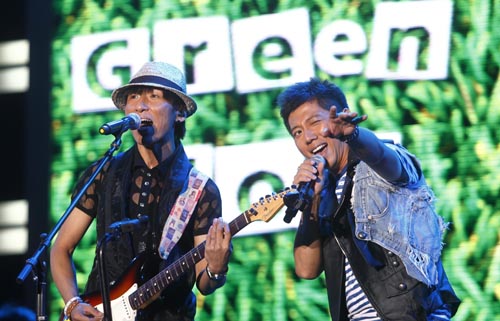 当日是上海世博会世界自然基金会荣誉日,一场以“每时,每刻,为地球!”为主题的公益环保音乐会在世博园博览广场举行,众多歌手和乐队用音乐倡导环保。新华社记者 裴鑫 摄