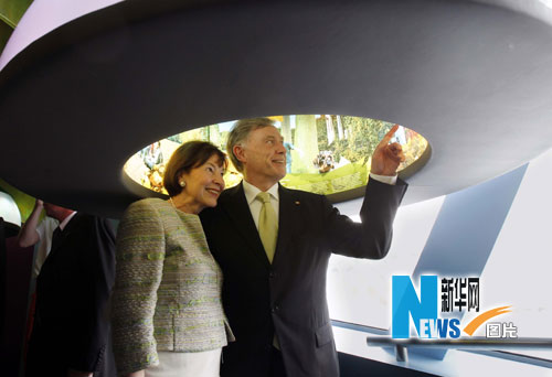 资料图片:2010年5月19日,德国总统克勒夫妇在德国馆内参观。新华社记者 刘颖