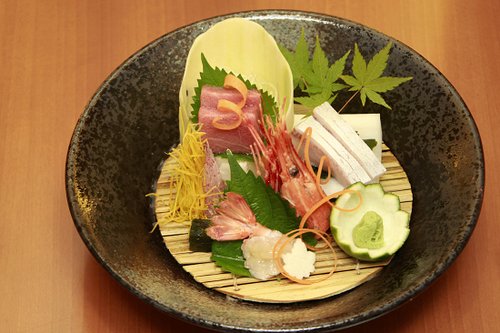 “秋之彩”料理共8道菜,原料有日本金枪鱼、牡丹虾、鲜贝及挪威三文鱼等。本组图片 早报世博记者 赵昀
