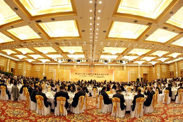 4月30日晚,中国国家主席胡锦涛在上海国际会议中心举行宴会,欢迎前来出席上海世博会开幕式的贵宾。 新华社记者 丁林 摄