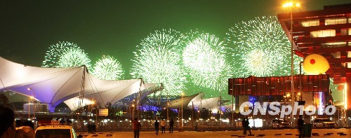 4月30日晚,上海世博会开幕焰火晚会在黄浦江两岸举行。 中新社发 沈春琛 摄