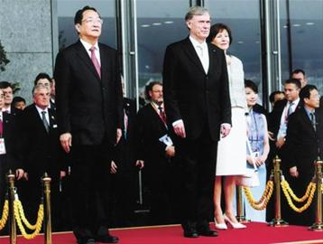 仪式上,俞正声在致辞时对上海世博会德国国家馆日活动的举行表示祝贺。俞正声说,德国于2000年成功举办了以“人类、自然、科技:一个诞生中的新世界”为主题的汉诺威世博会,10年后的今天,世博会来到中国上海。在本届世博会德国馆,我们可以看到和谐理念得到了进一步传承和发扬,感受到德国对于上海世博会的热情与支持。祝愿德国国家馆日活动取得圆满成功。