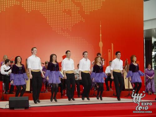 作为爱尔兰民间传统艺术,节奏欢快的爱尔兰踢踏舞将世博中心现场气氛推向高潮,而爱尔兰艺术家演唱的《斯利弗那蒙山》更是表达了爱尔兰人对“绿色”生活的热爱。