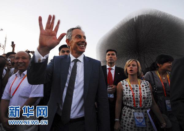 7月27日,英国前首相布莱尔造访上海世博会英国馆。当日是2012年英国伦敦奥运会开幕倒计时两周年纪念日,上海世博会英国馆于晚间举行倒计时庆祝活动,英国前首相布莱尔到场助兴。 新华社发