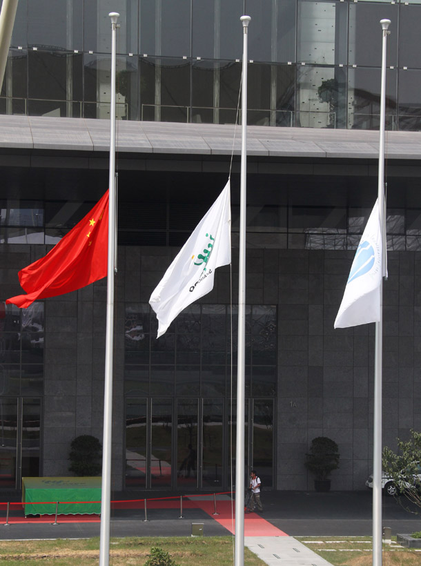 8月15日,上海世博园世博中心降半旗。新华社记者 汪永基 摄