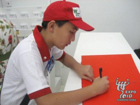 铺开贵宾留言簿,涂远哲认真地写下:愿红十字会能帮助更多需要帮助的人。最后,涂远哲和妈妈高兴地佩戴上了特制的红十字博爱身份证。(世博网)