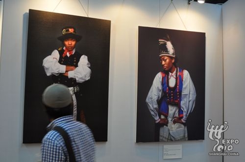 图片展现场,陈列着十余幅神态各异、栩栩如生的人像作品。这些图片中的主人公来自世界各地,虽然有着不同的肤色和表情,但都身着波兰各地区极富民族特色的服装。通过光影的完美演绎和主人公不同神态的烘托,整组作品极富画面感,不仅让观众看到了波兰文艺开放的一面,更让观众加深对波兰文化和艺术本质的理解。