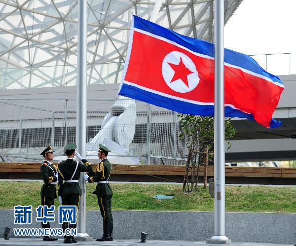 9月6日,上海世博会迎来朝鲜国家馆日。这是升旗仪式。 新华社记者 李百顺摄