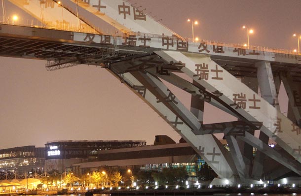 为庆祝9月14日中瑞两国建交60周年纪念日,上海世博会瑞士馆及瑞士政府于9月13日至15日在世博园区水域呈现了一场“瑞士霓光幻彩之夜”大型灯光艺术秀。享誉世界的瑞士传奇灯光艺术大师格里·霍夫施泰特尔来沪“点亮”卢浦大桥和外滩万国建筑群等地标性建筑。