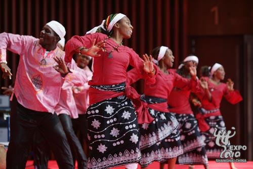 仪式上,来自喀麦隆的演员们身穿各种民族服装,为现场观众带来了喀麦隆各民族各地区不同的舞蹈表演,博得了现场观众的阵阵掌声。