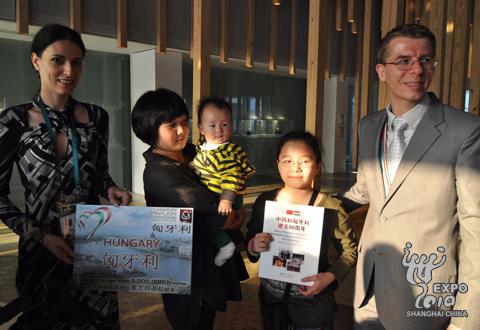 来自浙江的幸运游客成为了匈牙利国家馆第500名游客