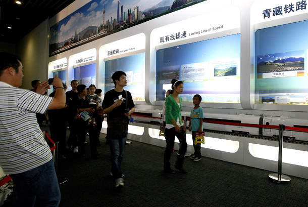10月2日,游客在上海世博园中国铁路馆内参观。新华社记者 陈飞 摄