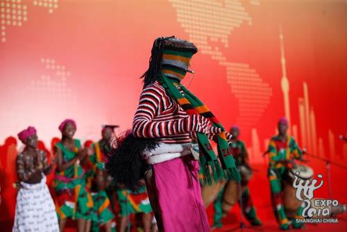 仪式上,来自赞比亚的演员表演了击鼓和舞蹈。