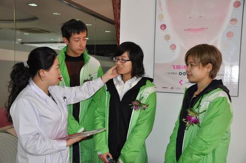 在“给奉献者送去关爱,让小白菜变得更美”的公益活动现场,这家医院的皮肤科医生对前来医院的30多位优秀“小白菜”进行了特别的服务。医院使用复合彩光嫩肤技术,为他们逐个作免费的光子护肤嫩肤美容。医生介绍,一个姑娘进去,30分钟出来,脸上的黝黑色不见了,面庞变得嫩白,皮肤变得细腻,有光泽,面容明显地变得年轻起来,姑娘和小伙都喜不自胜。“小白菜”除做彩光嫩肤美容外,上海华美医疗美容医院还给他(她)们赠送了纪念品。