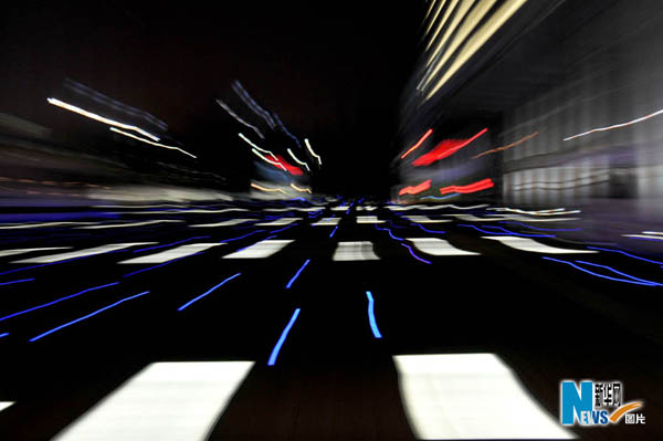 记者眼中,夜色下的世博园,迷离而梦幻。图为