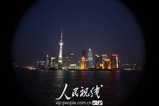 上海浦西外滩华灯初上,流光溢彩迎世博,浦东明珠璀璨耀眼,黄浦江边静候开幕。(记者于凯)