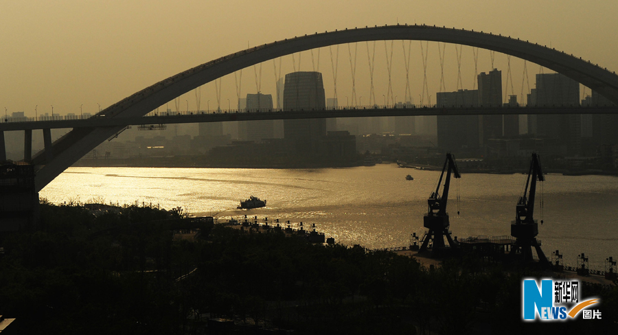 4月30日,黄浦江在夕阳的照射下显得十分静谧。中国2010年上海世博会将于当晚开幕。 新华社记者徐家军摄