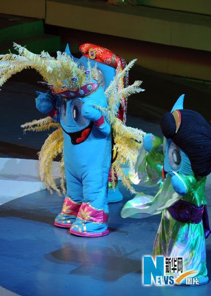 这是开幕式前上海世博会吉祥物“海宝”亮相。