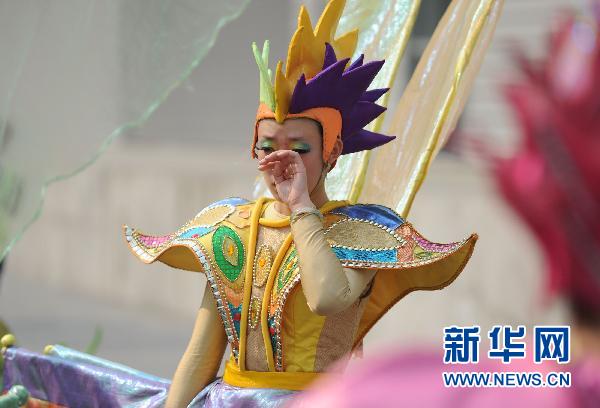 10月31日,一名舞蹈演员在表演结束后不禁落泪。当日,上海世博园浦西园区进行最后一次花车巡游。参加表演的舞蹈演员是来自山西晋中师范学校的学生,她们从7月中旬开始在园区内表演,为游客带来了无限欢乐。离别之际,她们与世博园、与朝夕相处的朋友老师难分难舍。新华社记者李健摄