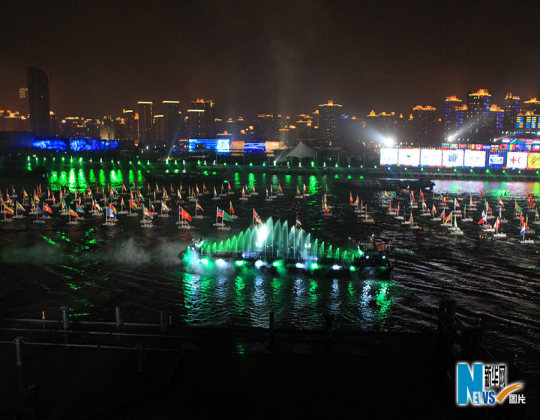 旗船列队行驶在黄埔江上。新华社记者郭大岳摄