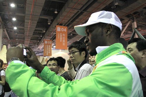 在非洲联合馆,我们见到了这几位可爱的“黑白菜”,他们的名字分别是罗纳、沙爱国和欧巴姆。其实早在见到他们之前,欧巴姆就已经是腾讯微博上的热议人物了。