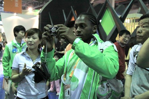 说起做志愿者的这几天,欧巴姆感慨挺多。“刚开始的时候中国的游客看到我是外国人,以为语言不通都不大跟我说话。我看出他们的这种顾虑,就主动跟他们说话,问问他们是否需要帮助”。说到这些欧巴姆笑的很开心,露出一口整齐洁白的牙齿。