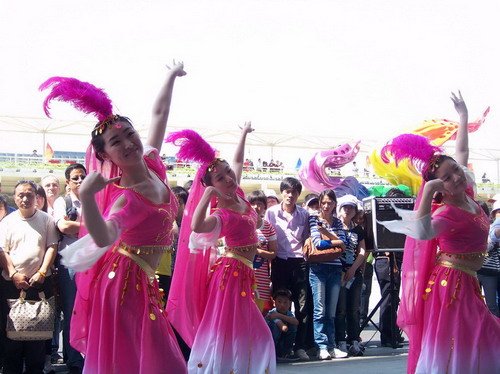 志愿者现场演绎新疆民族舞蹈