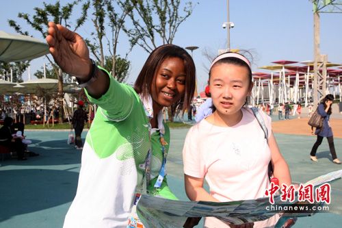 5月30日,来自非洲马里、现就读于同济大学的留学生泰雅当选世博志愿者之星。泰雅在世博志愿者的岗位上,用流利的中文热情的为游客服务,受到大家的赞扬。(汤彦俊 摄)