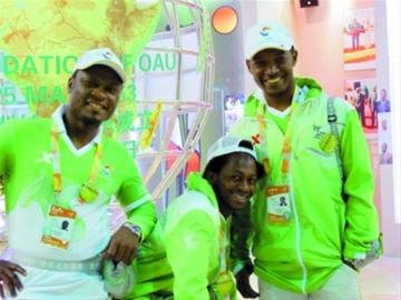 在非洲联合馆里,三位穿着“白菜服”,皮肤黝黑、笑容灿烂、中文流利的非洲志愿者格外受到游客欢迎,他们是来自华师大的罗纳、欧巴姆和沙爱国。作为第二批世博园区志愿者,他们在非洲联合馆为大家拍照、砍价,还每天提前到达园区,利用开馆前的时间四处收集“世博印章”盖在非洲联合馆明信片上,送给那些没有买到世博护照的游客或一些哭鼻子的小朋友。
