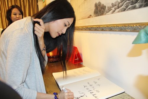 姚晨为联合国馆贵宾留言簿签名,祝愿城市让每个人的生活更美好