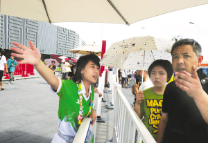 在中国馆服务的志愿者中,14名华侨华人志愿者与园区内众多的“小白菜”没有明显的区别。他们之中,陈珍怡、陈桃怡、陈天怡互相以姐弟相称,姐弟3人不仅来自同一个家族,还同是“中国世博第一人”的后代。