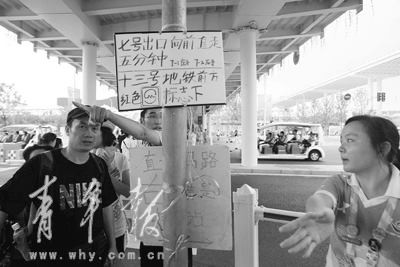 而在世博园里,也随处可以看到“小白菜”用心努力的结果。在世博大道线西向东的世博中心站排队区外,插着一块白色牌子,4张A4纸上是手绘的地图,上面分别标示出前往中国馆、主题馆、日韩馆以及前往浦西的方式。据说,这些都是“小白菜”总结出来常被问到的问题,他们标注在纸板上,方便游客了解。“小白菜”们从最初的信息接受者,变成了主动完备信息的人。
