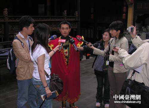 两岸记者在重庆湖广会馆采访川剧演员(摄影:芜同)