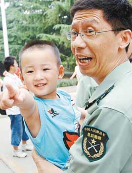 今年5月,3岁的四川北川县男孩郎铮被从废墟中营救出时,在担架上艰难地举起右手,向营救他的解放军官兵敬礼,这一瞬间感动了无数中国人。