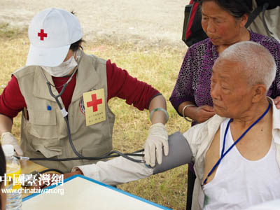 台湾红十字组织医疗队认真治疗受灾群众