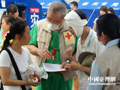 台湾红十字组织医疗队检查受灾群众