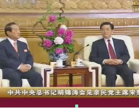 中国台湾网5月12日消息 中共中央总书记胡锦涛接见亲民党主席宋楚瑜。 胡锦涛表示,宋主席把这次大陆之行称为“搭桥之旅”,我衷心地希望通过亲民党大陆访问团的这次访问,在我们两党之间搭起一座互信之桥,在两岸同胞之间搭起一座沟通之桥。一会儿我还要和宋主席进行政治会谈,我相信在共同的政治基础上,经过我们双方的共同努力,会谈一定能够取得积极的成果。我同样相信通过两岸同胞的携手努力,两岸关系一定能够向着和平稳定的方向发展。(潇凝)