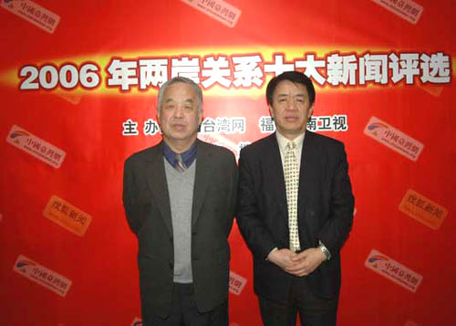 由中国台湾网、东南卫视主办,搜狐网协办的“2006年两岸关系十大新闻”评选活动于2006年12月15日正式启动。作为此次活动的重要组成部分,台湾问题专家郭震远(左)、刘红(右)在线接受访谈。